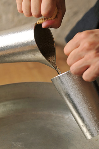 完成した燗酒に、その3%程度量の同酒(常温)を注ぐ。フレッシュ感や香りが増す。