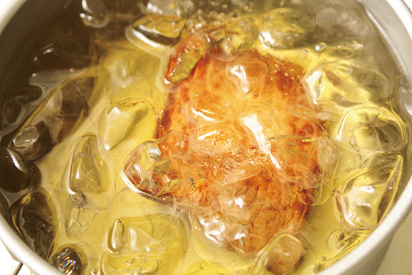 4 アルミホイルで肉を包み冷蔵庫で充分に冷やして出来上がり。