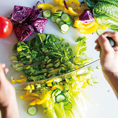 「まず、同じ大きさにチョップすることで、ドレッシングが和えやすくなり、食べて楽しい食感が演出されます」と話すのは、『サラド』代表の細井氏。
