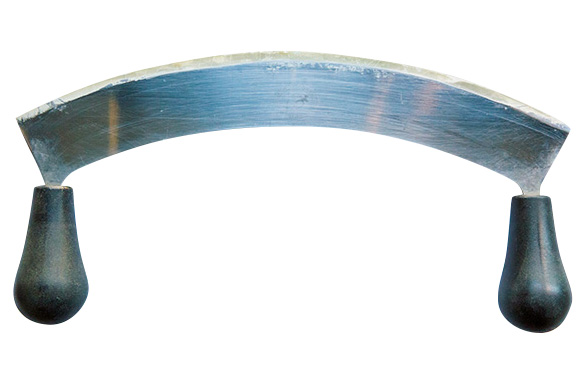 チョップする道具は半月型の包丁 “メッツァルーナ” を使用。シーソーの原理で切ることで効率良くチョップできる。