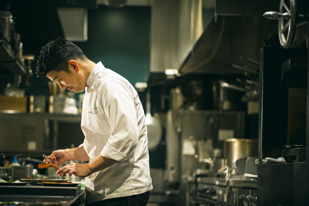恵比寿『イル・ボッカローネ』を経て、22歳で渡米し、三ツ星レストラン「Jean-Georges」本店で日本人初のスー・シェフに抜擢。帰国後、2014年『Jean-Georges Tokyo』シェフ・ド・キュイジーヌに就任。2018年『The Burn』料理長に就任。