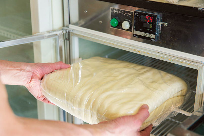 15〜16℃(季節によって変動)の熟成庫で一晩寝かせる。