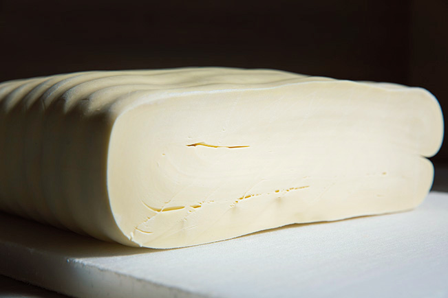 28分後に取り出し、流水で軽く流す。水で締めると少し縮む。表面はつるつる、中は何層にもなった凸凹の断面に。