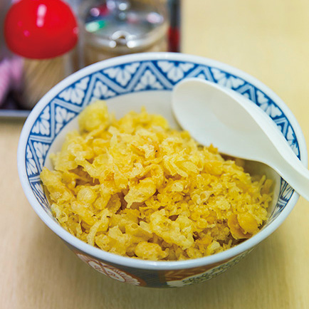 3 麺ではなく天かすに醤油をかけてよく混ぜる。醤油をかけた天かすと一緒に食べることでよりコクのある味に。