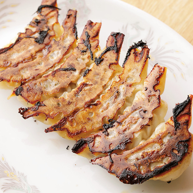 人気の「餃子(7個350円)」は大山豚をブレンドした国産豚肉とニンニクがたっぷり。薄めの皮でお酒に合うことこの上なし。