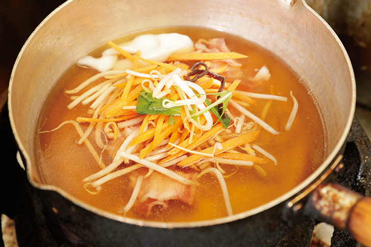 野菜は本場長崎と同じように細切り。スープは基本、塩味。しかし、とろりとした見た目はあの長崎のちゃんぽんではない。麺も細打ちの縮れ麺。鳥取、島根に広く存在する「山陰ちゃんぽん」はあんかけだ。店主の徳中氏の話では初代の父が店を始めた30年前には、すでに「ちゃんぽんと言えばあんかけ」だったという。スープも白濁したものではなく、シンプル塩味や醤油味。『大連』ではまかないから始まった「みそちゃんぽん」や「カレーちゃんぽん」も人気を博している。なぜあんかけになったのかという謎は、「どうもルーツは関西らしい」という説はあるものの、はっきりしない。いつまでも熱々で、ゆっくりと味わえるのは、山陰のゆったりとした人間性にぴったりなのかもしれない。