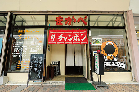 彦根ちゃんぽんは鰹節と昆布で取る出汁がベースの和風ちゃんぽんだ。初代が店を開いたのは58年前の昭和38年。初代店主は長崎へ修行に行き、長崎ちゃんぽんを習得したのち彦根に店を開いた。しかしまったくの閑古鳥。白濁した濃厚なスープは、関西の味に慣れ親しんでいた彦根の人達には受け入れられず、店主は試行錯誤を重ねて、黄金色の和風出汁に辿り着いた。「細切りの具材をスープで煮込むところはちゃんぽんのやり方が残っていますが、スープや麺は中華そばと同じなんですね。関西と九州がそれぞれの良さを出し合っています」と店主の小川氏。彦根市民は、子どもの頃から家族揃って、賑やかな商店街にあった「をかべ」にちゃんぽんを食べに行くことが楽しみだったという。