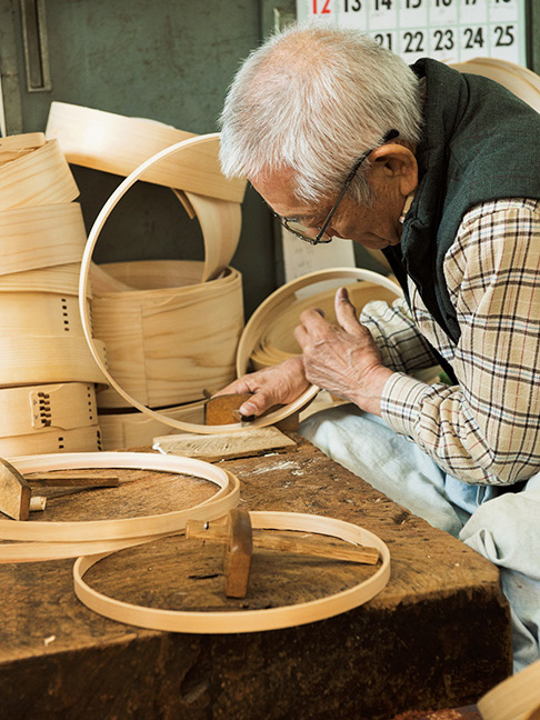 ひと工程ずつ丁寧に、丹誠込めて作られる蒸篭。昔ながらの技術を伝承する、熟練された技をじっくりと見ていこう。