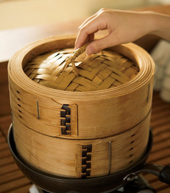 電子レンジが登場して以来、家庭で蒸し器が活躍する場はずいぶんと減ってしまった。しかし、電子の力で温める料理と、蒸気でじっくりと蒸し上げる料理では、味もさることながら、料理をする充実感も違う。さらに、蒸篭の選び方ひとつでも、蒸し料理の味が変わってくる。中華街や量販店に行けば安価なものも手に入るが、職人の作る蒸篭は、いかに蒸気を逃さず、いかに器の中で蒸気を対流させられるかが計算されている。多少の面倒はともなうが、素材の美味しさを最大限に引き出すため、本物の蒸篭を知ってみてはいかがだろう。