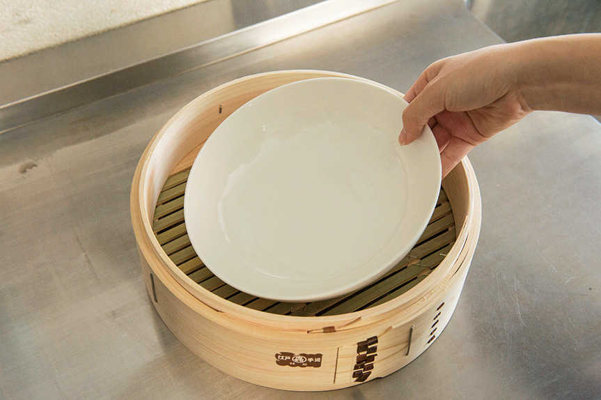 美味しく蒸し上げるには、必ず湯を沸騰させてから材料をのせるのがポイント。お湯がぬるい状態で加熱し始めると、熱の通りが悪く時間がかかり、水っぽい仕上がりになってしまう。長時間蒸す場合は、下の鍋の湯がなくならないよう、途中で様子を見ながら水差しを。空焚きしてしまうと、蒸篭が焦げてゆるんでしまうばかりか、火事の原因にもなるので充分に注意。また、蒸篭はデリケートなので、以下の手入れ方法や保存方法をよく読んで、末永く使えるように丁寧に扱いたい。