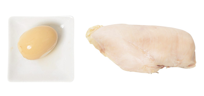 1 鶏チャーシューを適度な厚みに切り分けておく。