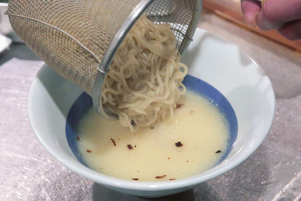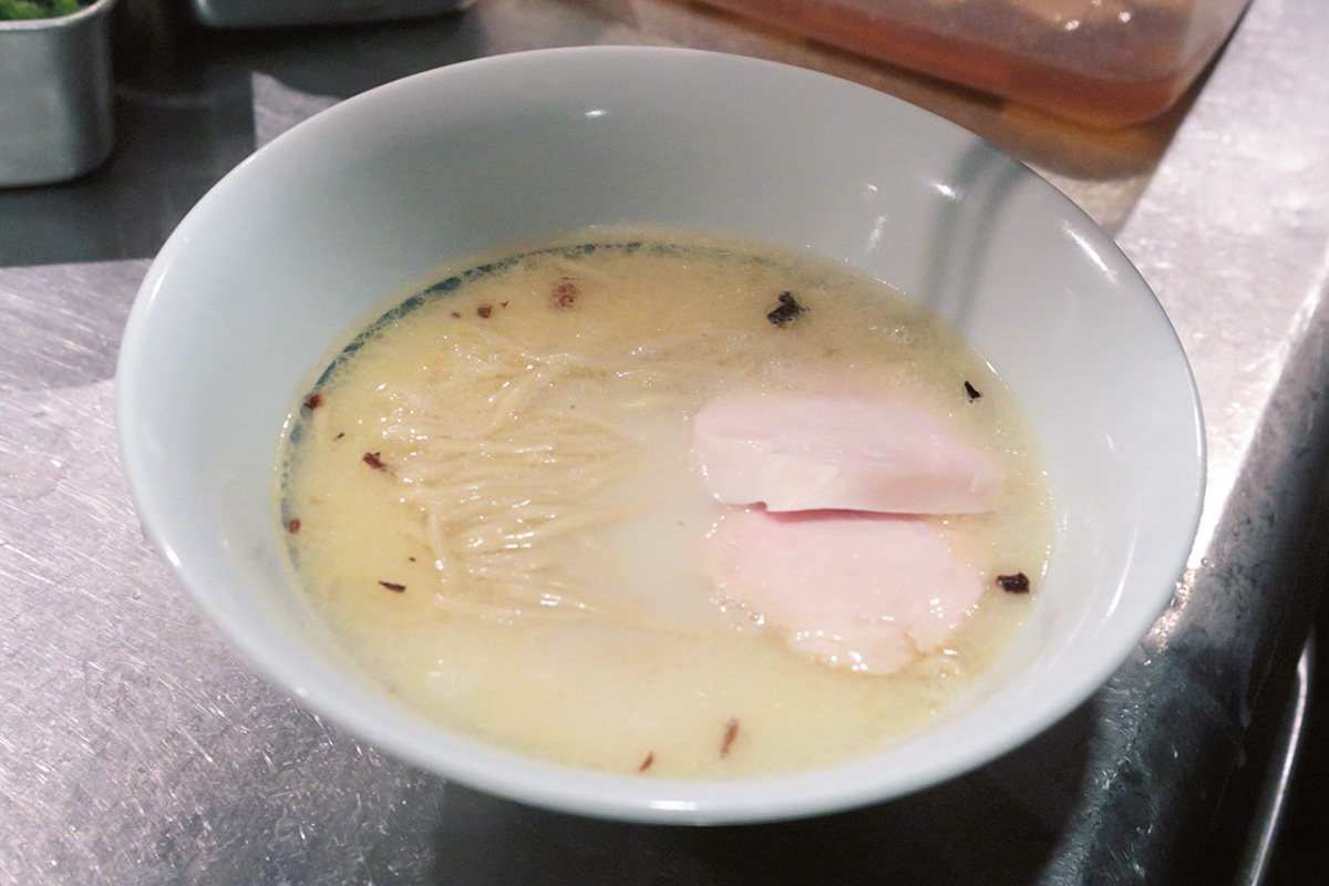 色味からしてさっぱりとする塩系の王者「鶏白湯」。まろやかさの中に複雑な味わいを秘めるこのラーメンは決して難しいレシピではない。必修レシピのひとつである。