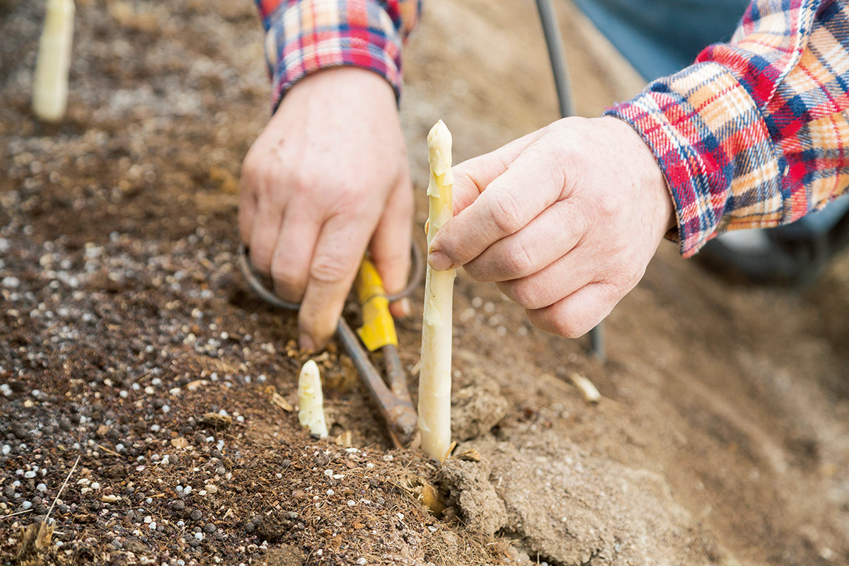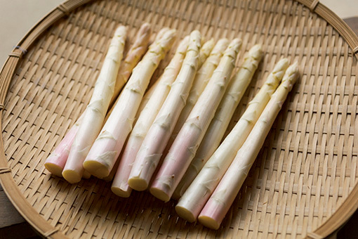 日本名で松葉独活(まつばうど)と呼ばれるアスパラガスにはグリーンとホワイトがあるが、ともに同じ品種だ。夏から秋にかけて土中の養分を根部に蓄え、春先から新芽が芽吹く。萌芽後そのまま成長させたのがグリーンアスパラガス。遮光して育てたのがホワイトアスパラガスだ。