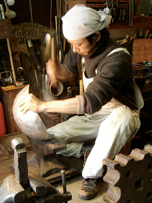その後、鍋の形に形成し、銅をやわらかくするために火入れをする。