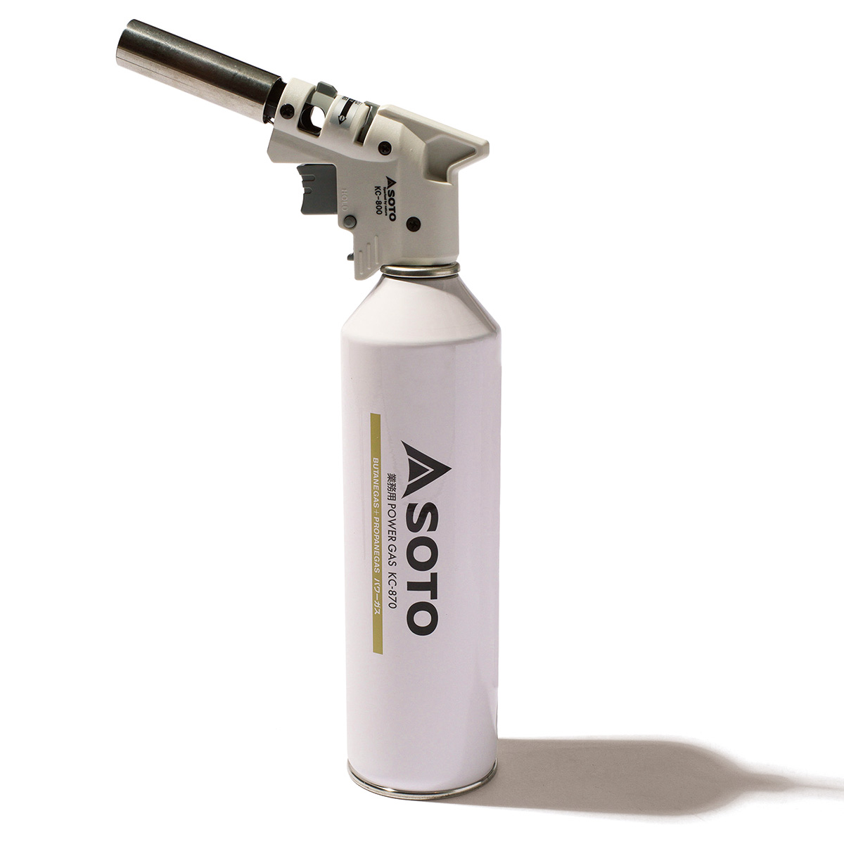 低温調理した肉やレアに仕上げた食材をゲストの目の前で仕上げるには、バーナーが最適だ。トリガータイプならば片手でスマートに扱える。「炙りマスター Pro KC-800(ボンベ別売)」5,400円/SOTO(新富士バーナー)