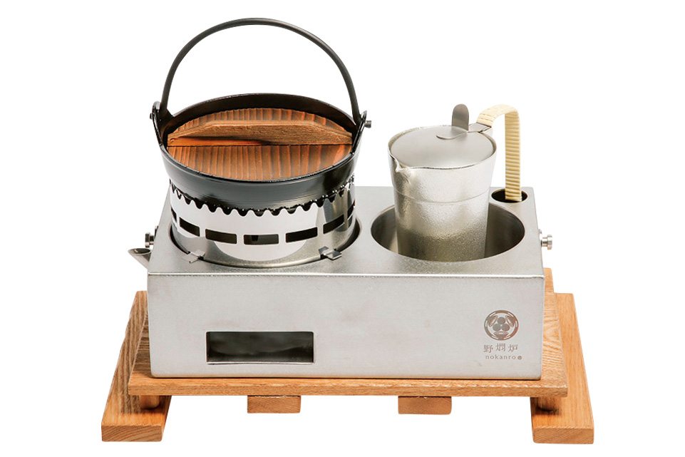 江戸時代に隆盛を極めた「野燗炉」(別名:燗銅壺)。「焼く」「炙る」「炊く」「煮る」+「燗酒」など多彩な機能を有しており、屋内からアウトドアまで幅広く利用可能。※備品別売り(JIPANGWORKS TEL/0794-83-1012)