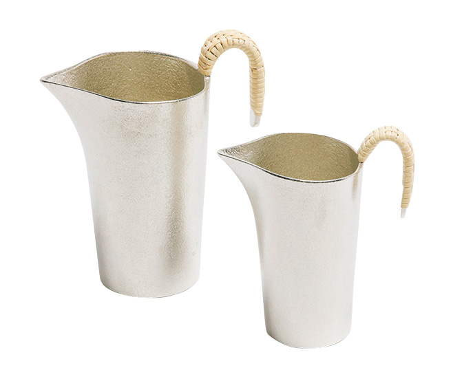 燗をつけるための酒道具で、熱伝導の良い錫100%のちろり。イオンの効果で、飲み物をまろやかにするといわれている。熱燗だけでなく冷酒を飲むのにもおすすめ。(能作 TEL/0766-63-5080)