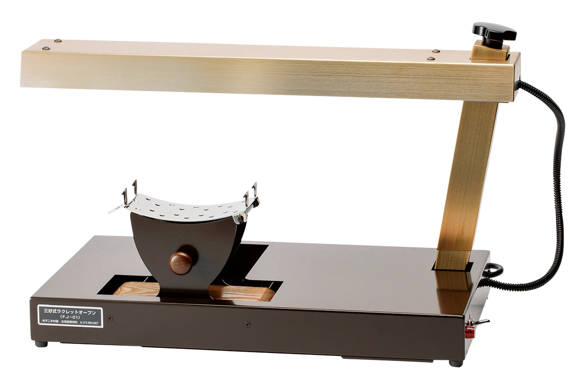 日本の家庭でも本格的なラクレットチーズが楽しめるよう、3年半かけて開発されたラクレットオーブン。ヒーターが上下に動くので、好みの焼き加減に調整できる。(不二木材)