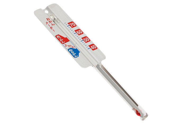 燗酒にこだわる人には必需品。「熱燗」「上燗」「ぬる燗」と好みの温度を計ることができ、細かい目盛も付いているので、絶妙な温度でお酒を楽しみたい人にはおすすめ。(釜浅商店 TEL/03-3841-9355)