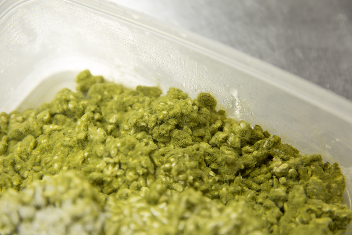 「初年度はうまくいったのですが、その後は失敗続きでした。原因を調べてみると農薬を空中散布する時期やゴールデンウィークや学校行事などで車移動が活発な時期に麹菌ではない黒や灰色のカビが増えることがわかりました。それとつくり手の気持ちが落ち込んでいる時も同様です。時期をずらしたり、辛い時は休んだりして改善したことで、きれいな緑色の麹菌ができるようになりました」