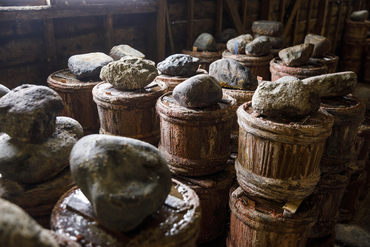 塩漬けが終わったら、ぬか、麹とともに木樽で2年ほど漬け込む。ポイントは、差し汁としてイワシの魚醤を使い、味わいをより豊かにすること。科学的なメカニズムこそ解明されていないものの、この過程で確実に無毒化されるという。安全性を確保するため、決められた検査期間の毒性検査を経てから出荷・販売している。