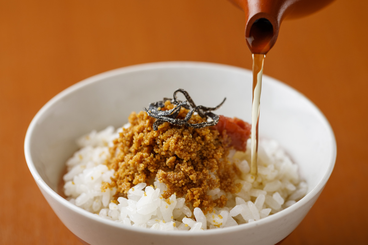原料となるのは、能登半島の沖合で獲れたごまふぐ。卵巣は毒性が強いため、伝統的な加工法によって時間をかけて無毒化する必要がある。木樽の中で発酵したふぐの子は、黄金色に変化して現れる。そのままを軽く炙るだけでも十分おいしいが、お茶漬けに載せても良し、パスタに和えても良し。お酒のあてに、ご飯のお供に、さまざまな味わい方が楽しめる。