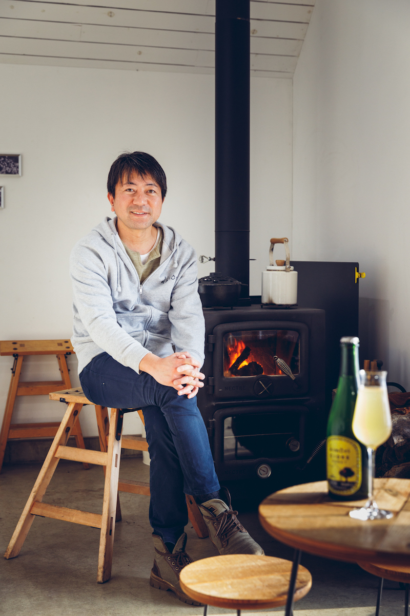 「kimori」代表の高橋哲史さんは、「私たちの工房では、シードルはりんごの加工品という意識はなく、畑から生まれた農産物の延長にあるものと考え、りんごになるべく近い状態で味わってもらいたいと思っています。そのため、水などは加えずに果汁のみを使用し、無濾過製法で仕上げているため、グラスに注いだ時に濁っているのが特徴。りんごの美味しさを丸ごと味わえるシードルです」と話す。