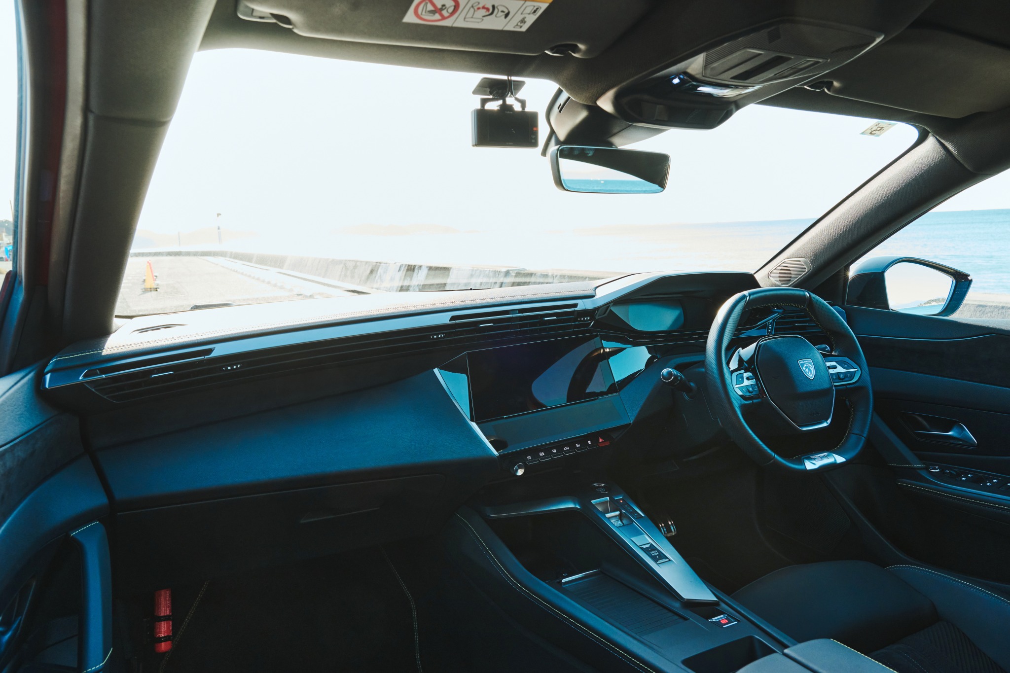 メーター表示を前後2画面にした独自の「3D i-コックピット」は高い位置に設置され、楕円型の小径ステアリングの上から覗くスタイルで視認性も抜群。黒を基調としたレザータッチで仕立てられたインテリアも上質な趣。