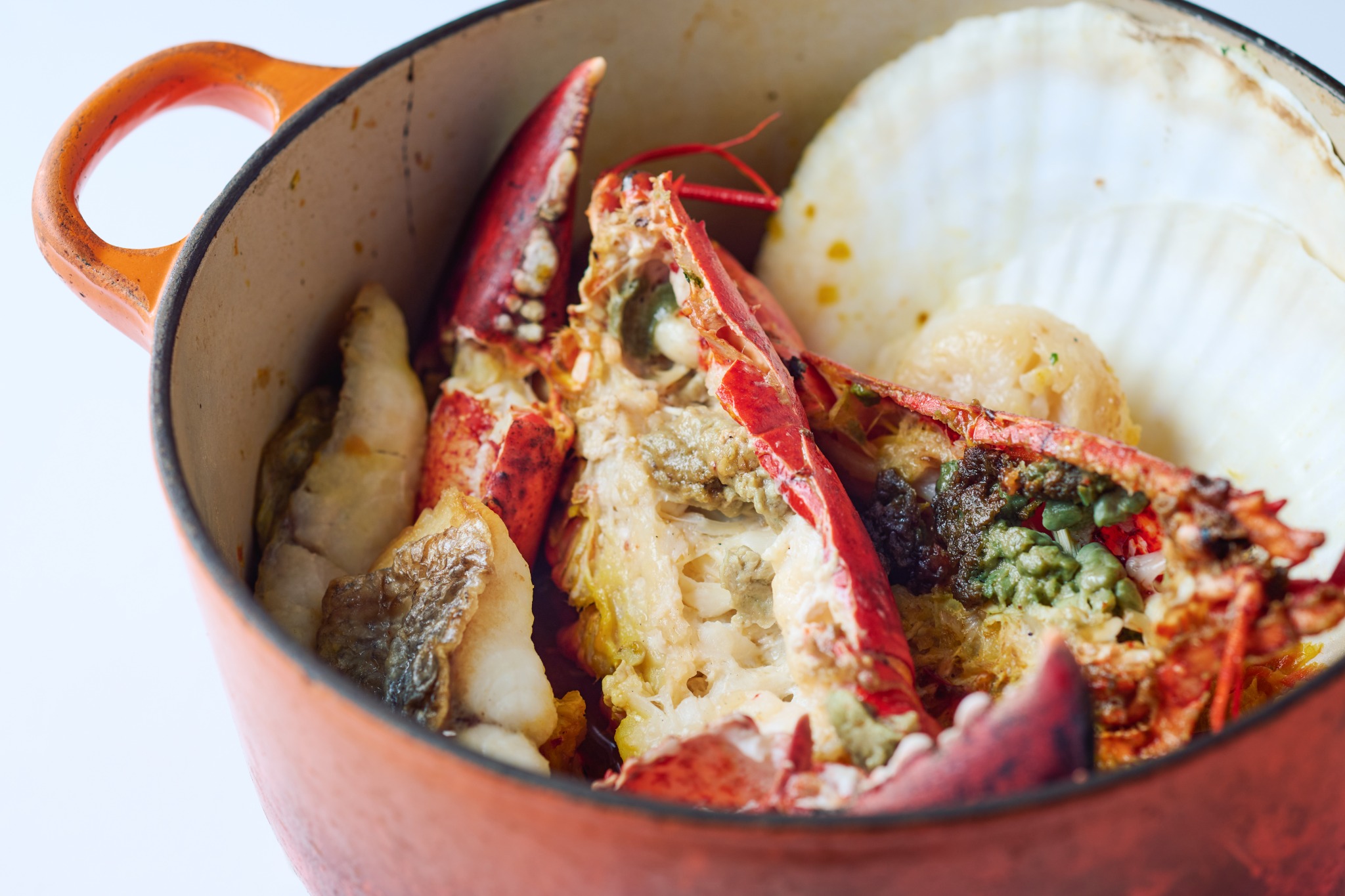 名物のブイヤベースは、小鍋をコンロにかけながら熱々の状態のまま、客前で取り分けてくれるという心憎い演出も。