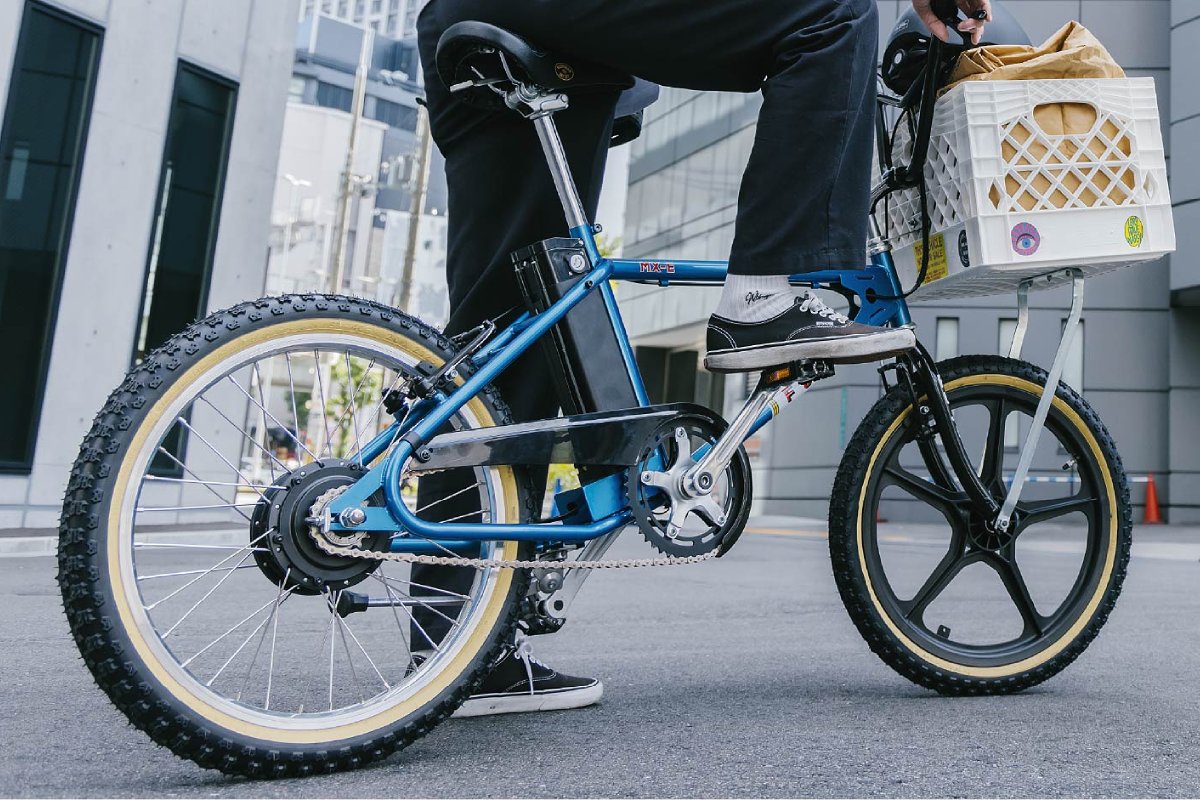 「MX-E」は、BMXがストリートカルチャーとして大きな影響力を持ち始めた1980年頃にFUJIが展開していた名車「MX-500」をセルフオマージュしたものである。細身のクロモリ製フレームやループテール、ダイキャスト製のフロントフォークエンドといった当時の特徴的なディテールを忠実に再現しつつ、現代のライフスタイルに合わせた最新の電動アシストユニットと、クラス27(最大積載重量27kg)に対応した専用リアキャリアを標準装備している。