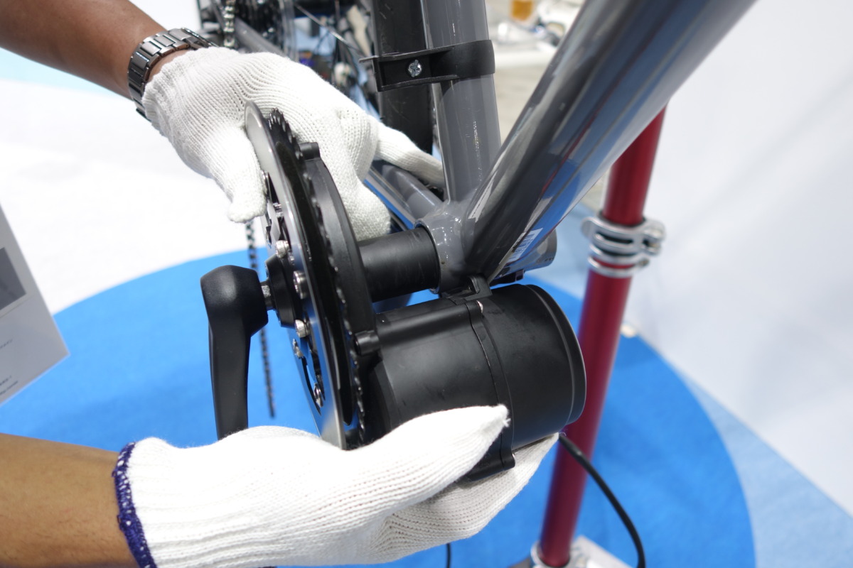 会場で注目を集めていたのは、スマチャリ(SmaChari)だ。ホンダが開発した「既存の自転車に後付け可能な電動アシストユニット+スマートフォンアプリ」のシステム。システムが搭載されたeバイクも発売されているが、2025年10月から「SmaChari Kit」として電動ユニット+ソフトウェアをパッケージ化し、自転車販売店やメーカー向けに供給を開始することで話題を集めている。