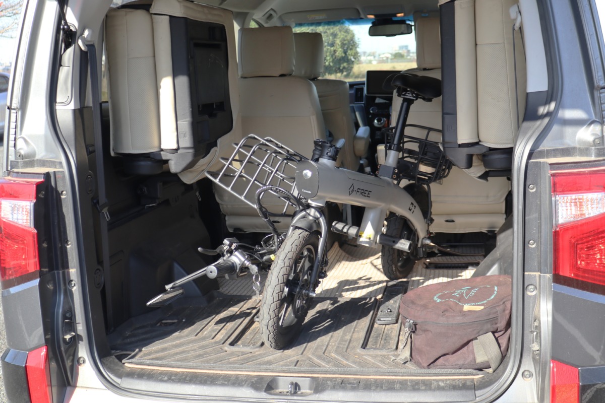 走行可能距離は30㎞くらいなので、遠くのエリアへの往復には向かない。車に積んで移動し、旅先で展開する使い方の相性がいい。