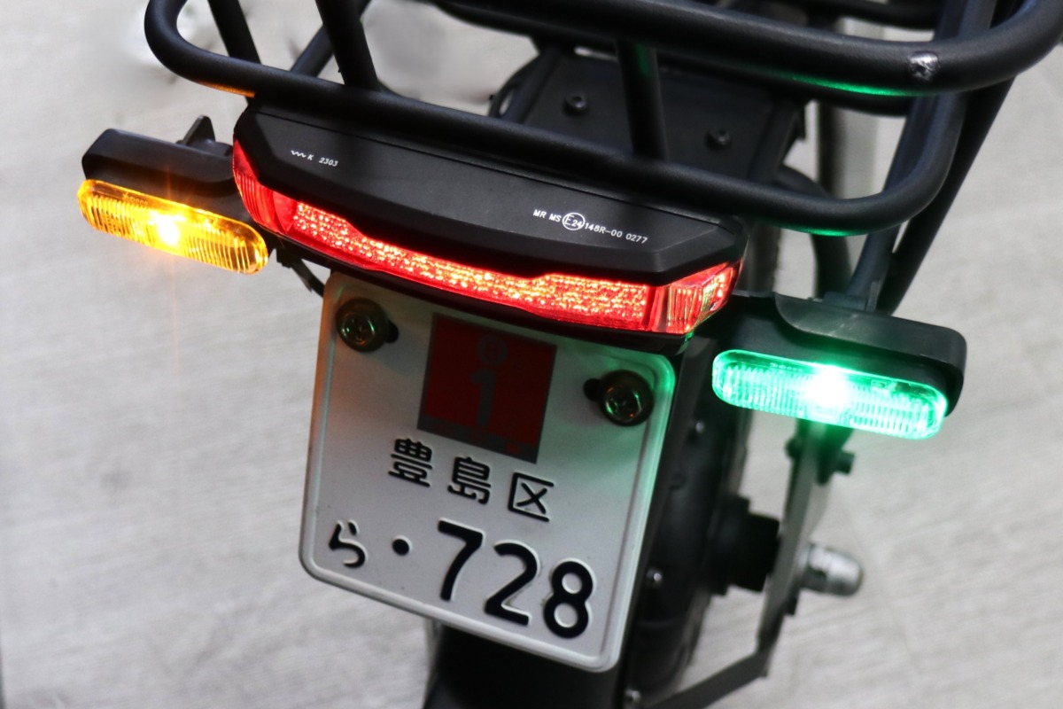 この切り替えで走行シーンに応じて使い分ける。ウインカーも付いており、バイクと同じように曲がる時に点滅させる。