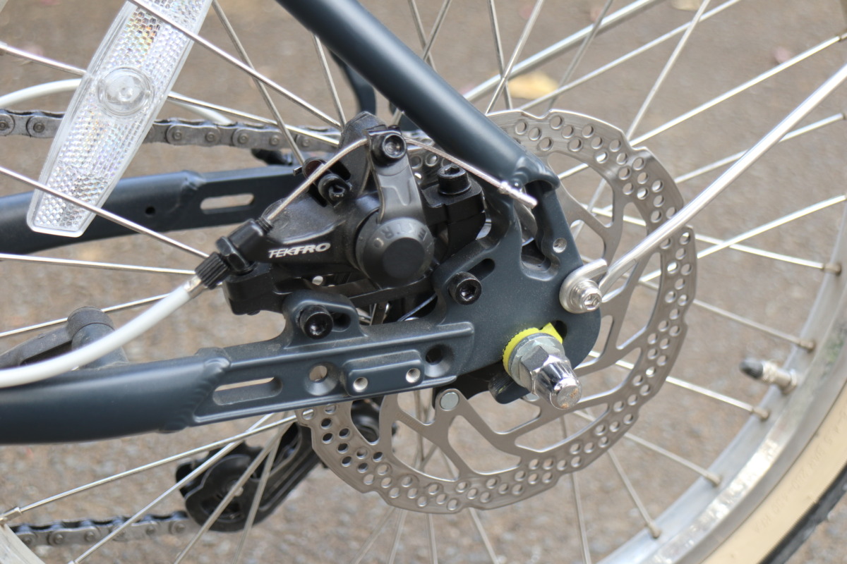 ディスクブレーキの制動は積載時でも安心感が高く、ストップ&ゴーが多い都市部でもストレスが少ない。