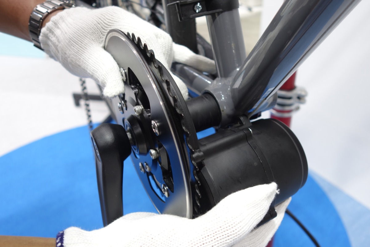 スマチャリのドライブユニットインストール実演(Japan Bike Show2025にて撮影)