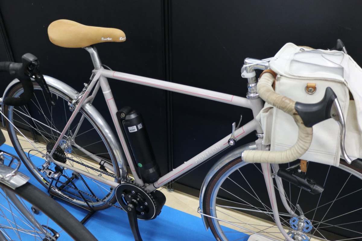 こちらも、伝統的なランドナースタイルのツーリング車を得意とする山音製輪所のMONSON。スマチャリが違和感なく収まっている。ランドナーは、もともと積載や長距離走行を前提とした設計を持つ。スマチャリが加わることで、条件にもよるが100㎞以上のアシストが可能となる。峠を含むロングツーリングでもラクラク走破できるだろう。