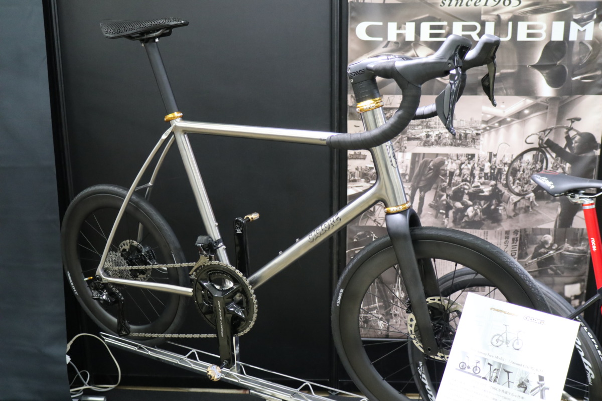 会場では、例年最大規模の展示と人気を誇る、ケルビム(今野製作所)エクイリブリウムサイクルワークスがチタン製の小径車を出展しており、どちらも高い完成度を見せていた。