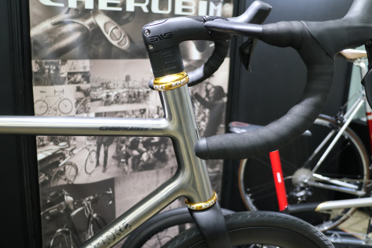 チタンの軽さと、小径車の取り回しの良さ。小径車の設計については、こだわりがあるケルビムのジオメトリーで小径ならではの速さとメリットを追求。製作は、東京ほか中国・北京、上海などに販売ショップを多数展開するREとのコラボレーション。ヘッドまわりやエンド、シートステー集合部など3Dプリンターで作られている。フレーム販売価格は、37万円(税抜、カーボンフォーク、シートポスト付き)。