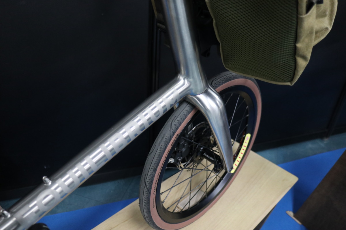 ランドナーと並んで存在感を放っていたのがこちらはノンアシストだが、チタンフレームのミニベロだ。
