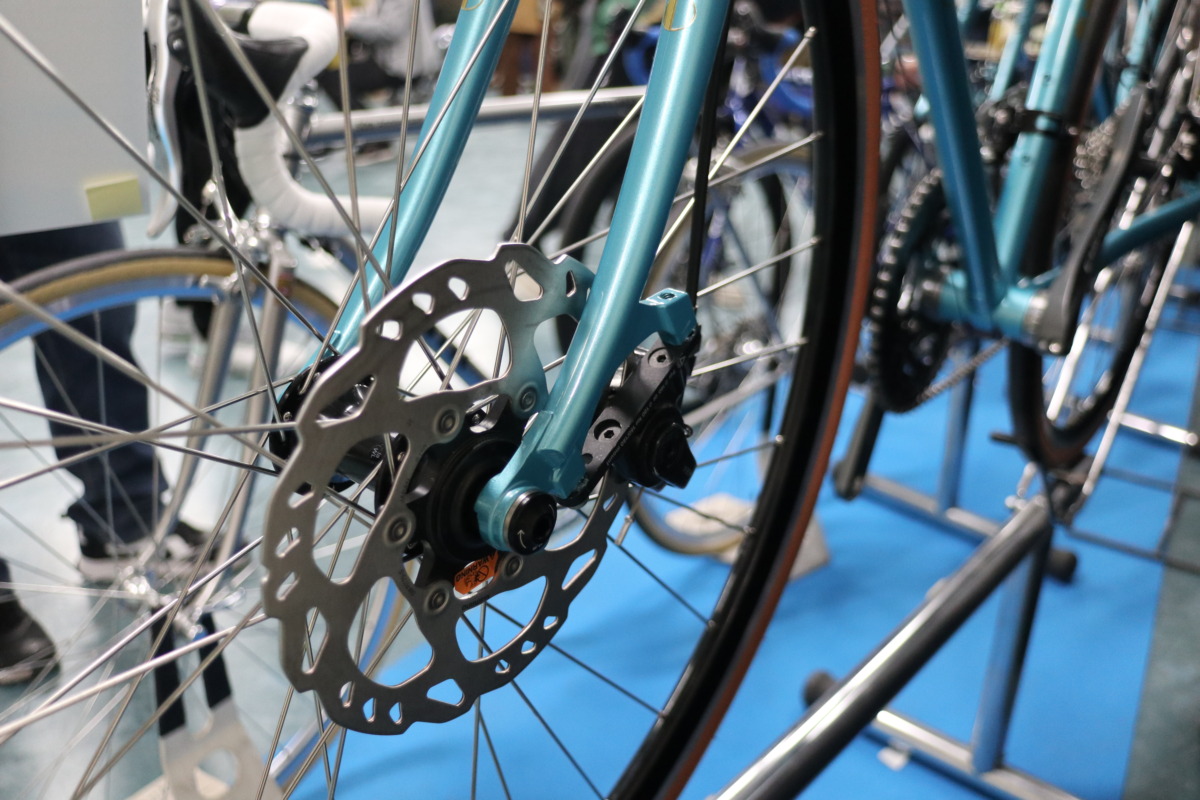 ボリュームと丸みを帯びたフォークがかわいい。フォークは3Dプリンターにより製作という。チタン×3Dプリンターが、世界的にハンドメイドフレーム製作を大きく変えている。