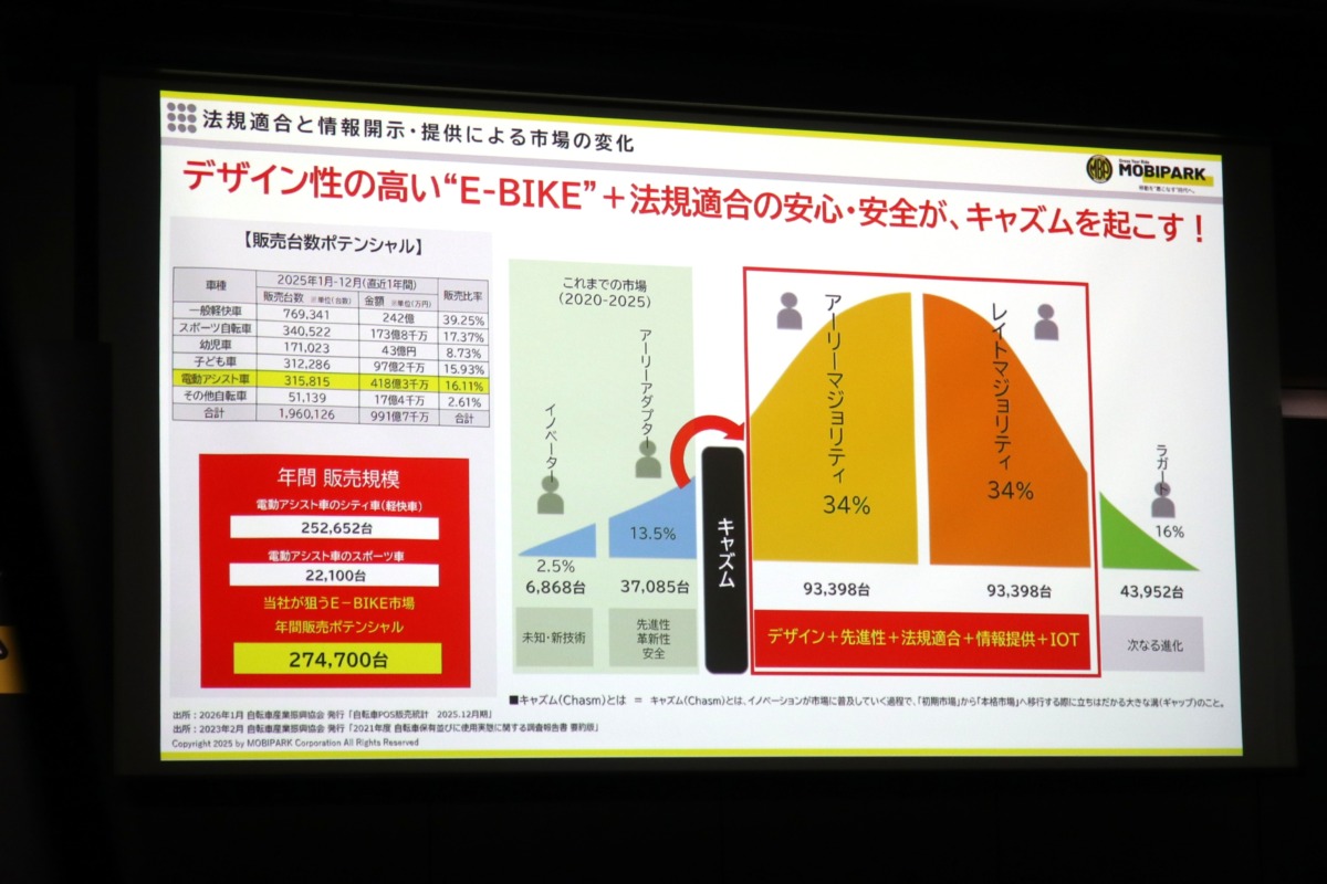 さらに将来的にはIoT連携やリファービッシュ循環モデル、環境価値創出といった構想も掲げられており、eバイクを一過性のブームではなく、持続可能なモビリティとして育てようとする姿勢がうかがえた。