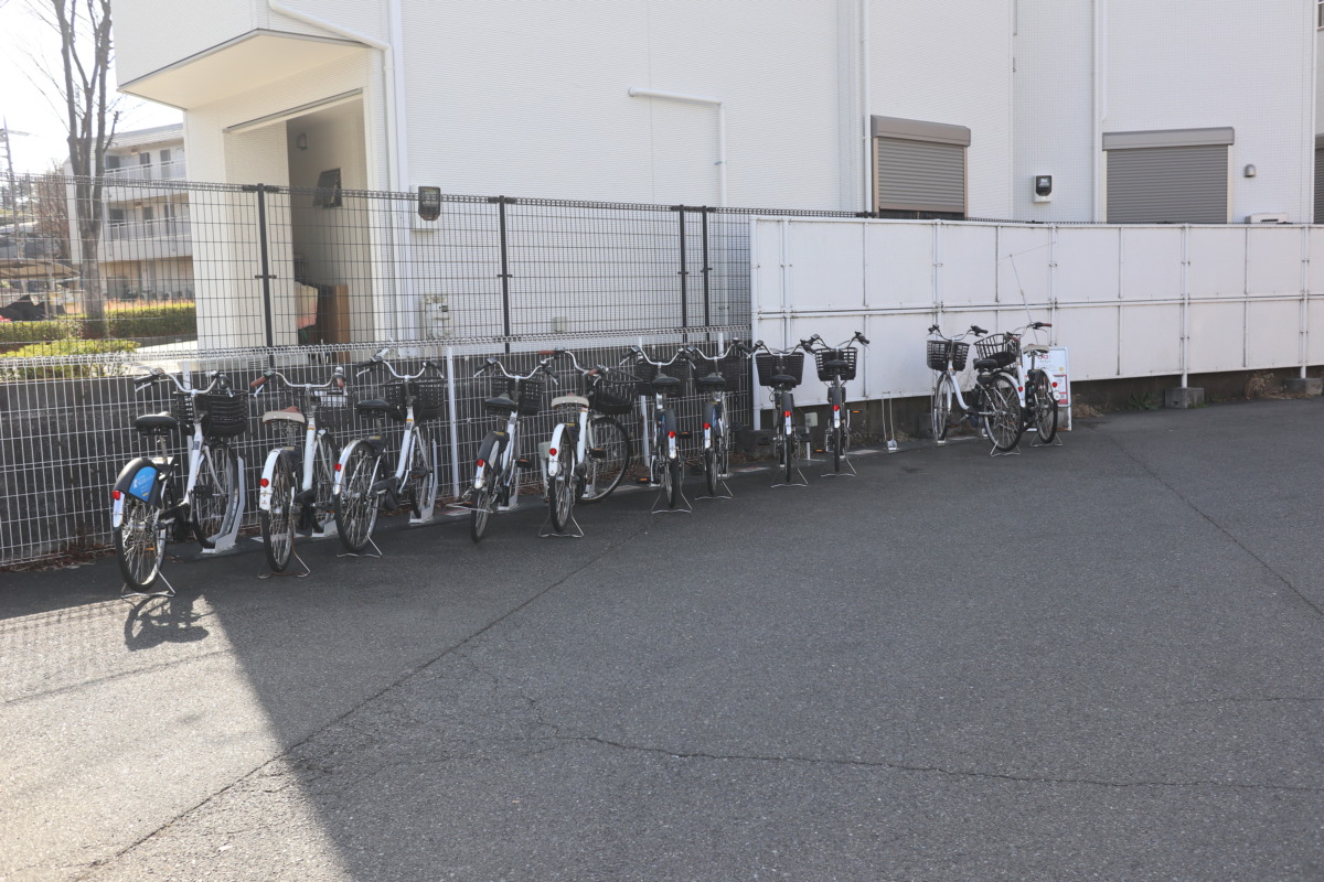 近所の公園に設置されているHELLO CYCLINGのポート。住宅地の中にもこうしたポートが点在しており、徒歩圏内から気軽に利用できるのが便利なところ。思い立ったときにすぐ借りられるため、ちょっとした外出や散歩の延長のような感覚で利用できる。