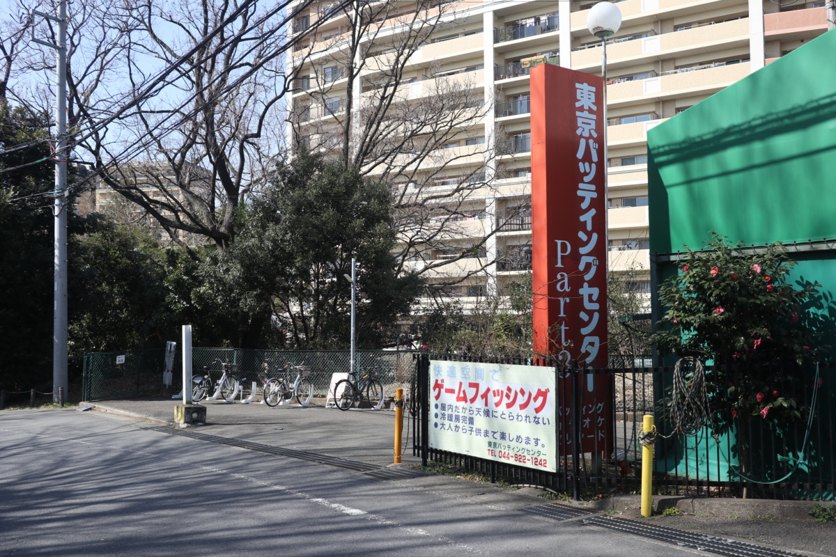 向こう側には住宅地の景色が広がる、生田ゴルフ場の脇を歩いて、生田緑地の反対側の出口へ。このあたりにいくつかポートがある。
