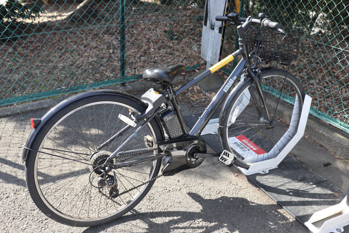今度はスポーツタイプの電動アシスト自転車を借りてみる。フラットバーで軽快に走れる仕様で、走るのが楽しいタイプだ。「KUROAD Lite」と、見たことがないロゴのモデル。調べてみると、パナソニックの電動クロスバイク、ベロスターをHELLO CYCLING向けにモディファイした専用モデルのようだ。