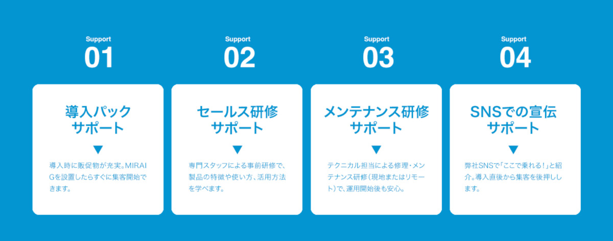 すでに「COSWHEEL MIRAI G」は、沖縄県で観光レンタル用として12台の導入が予定されているなど、事業者からの関心も高い。Acalieでは、レンタル事業を検討する事業者向けに、車体6台にバイクカバーやのぼり・チラシなどの販促物をセットにした「事業者向け導入プラン」を用意している。Makuakeのプロジェクト内では、一般販売予定価格(253,000円/1台)から約46%オフとなる特別価格で提供されている。