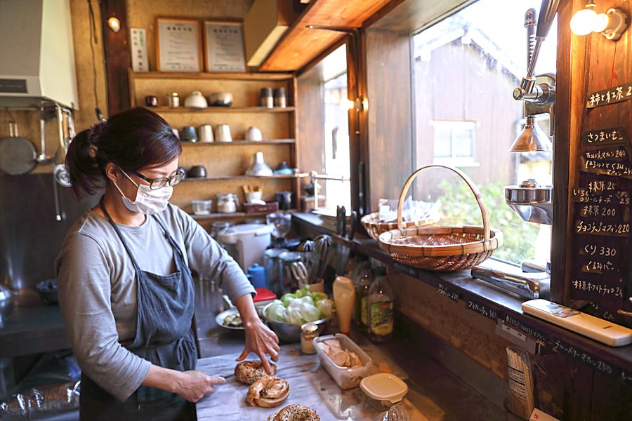 そしてその一角にあるのが、築100年の古民家の蔵を改装したちいさなカフェ「Kitchen 313 Kamiyuge」。神戸から移住してきたお話好きの店主が出迎えてくれます。