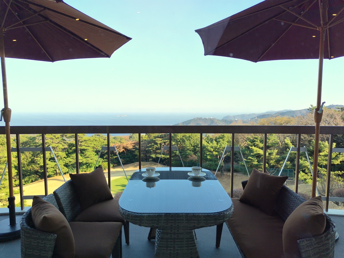 来場者にスタート前のラウンジコーヒーを無料で提供するサービスもスタート。熱海市街地と初島を望む絶景のテラスで朝のモーニングコーヒーをゆったりと楽しむことができる。※サービス提供時間は10:00まで
