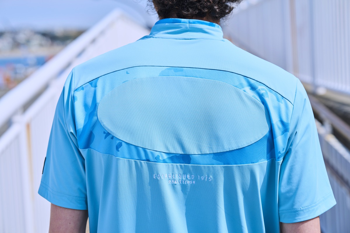 DRY PLUS COOL素材を採用した冷感モックシャツ。ポリウレタン混の軽量ストレッチ素材が、快適なスイングをサポートする。背面のオークリーロゴ型カモフラージュ柄と、衿周りの刺繍がスタイリッシュで、ゴルフウェアとしての価値を一段と高めてくれる。