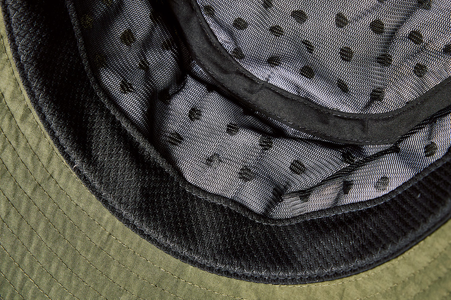 そんな雑談をEVEN誌営業部員モリとしていた際に、なぜか誇らしげな表情で手渡されたのが、このバケットハット。一見、今風のシンプルなバケハかなと思いきや、真夏のゴルフに最適な機能性を備えているとのこと。使用される素材は、被るだけで木陰にいるような感覚になるという「コカゲル」。裏に遮熱素材を挟み込んで直射日光を跳ね返す機能性を有し、ゴルフだけでなくデイリーユースにも最適な仕様となっている。カジュアルなスタイリングにマッチして、高い機能性で快適なプレーをサポートしてくれる新作バケットハット。