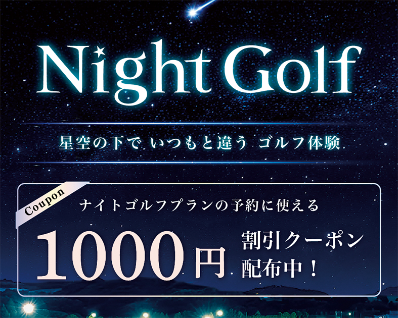 ナイトゴルフ営業開始を記念して、既存の3ゴルフ場を含め、¥1,000割引デジタルクーポンのプレゼントキャンペーンを6/30まで実施している。暑い夏、夕暮れからのゴルフを楽しんでみては。